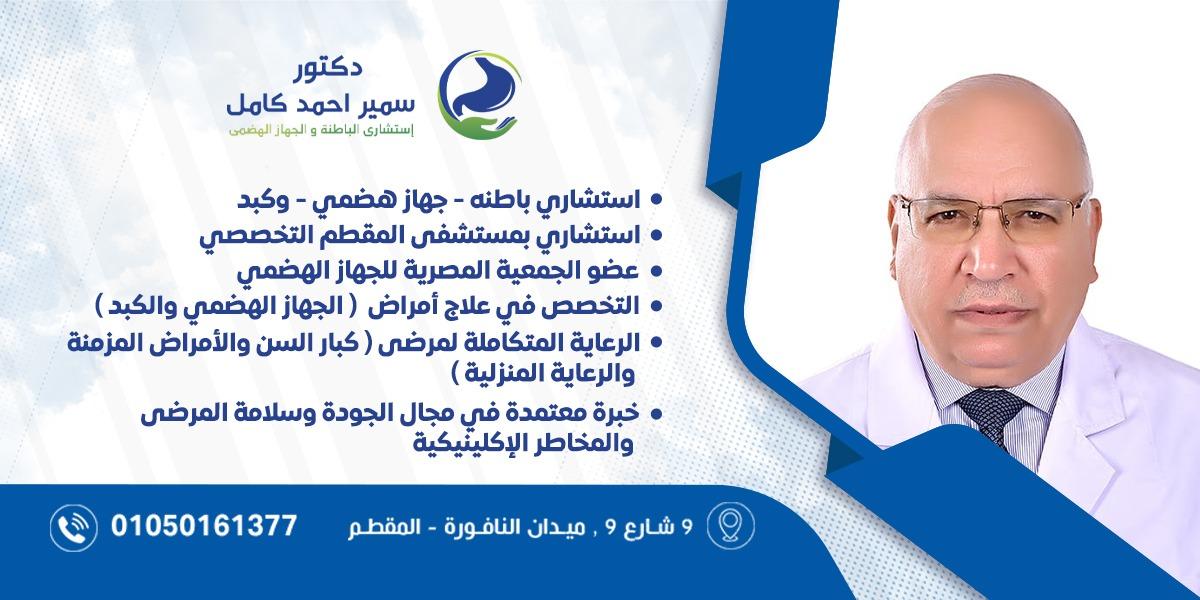دكتور سمير كامل استشاري الباطنة والجهاز الهضمي والكبد بالمستشفيات التعليمية، متخصص في علاج أمراض الكبد والجهاز الهضمي والأمراض المعدية وعلاج الأمراض الباطنية المختلفة.
